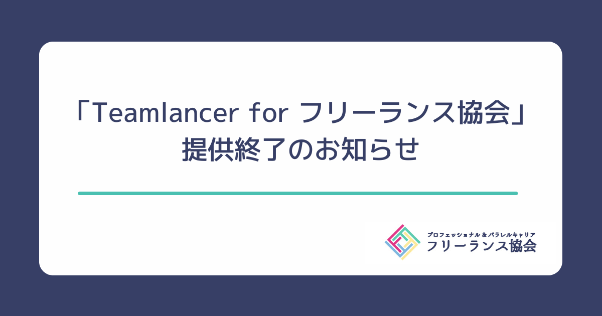 「Teamlancer for フリーランス協会」提供終了のお知らせ